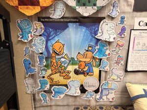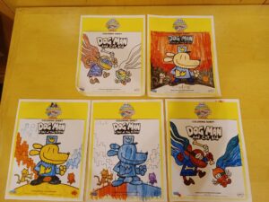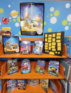 Over 7,000 classrooms, school libraries, public libraries, bookstores, and other vital community centers received Dav Pilkey’s Power Up with Reading: Dog Man and Friends Epic Event Kit. This kit included six of Dav’s beloved books, an activity guide (also available online), a timeline about Dav’s life, AND the exclusive Dog Man and Friends Get Caught Reading poster. Over 10,000 large-scale posters were distributed to hang in schools, libraries, and bookstores. Over 350,000 copies of the poster in a smaller size were given to kids and families to have at home!