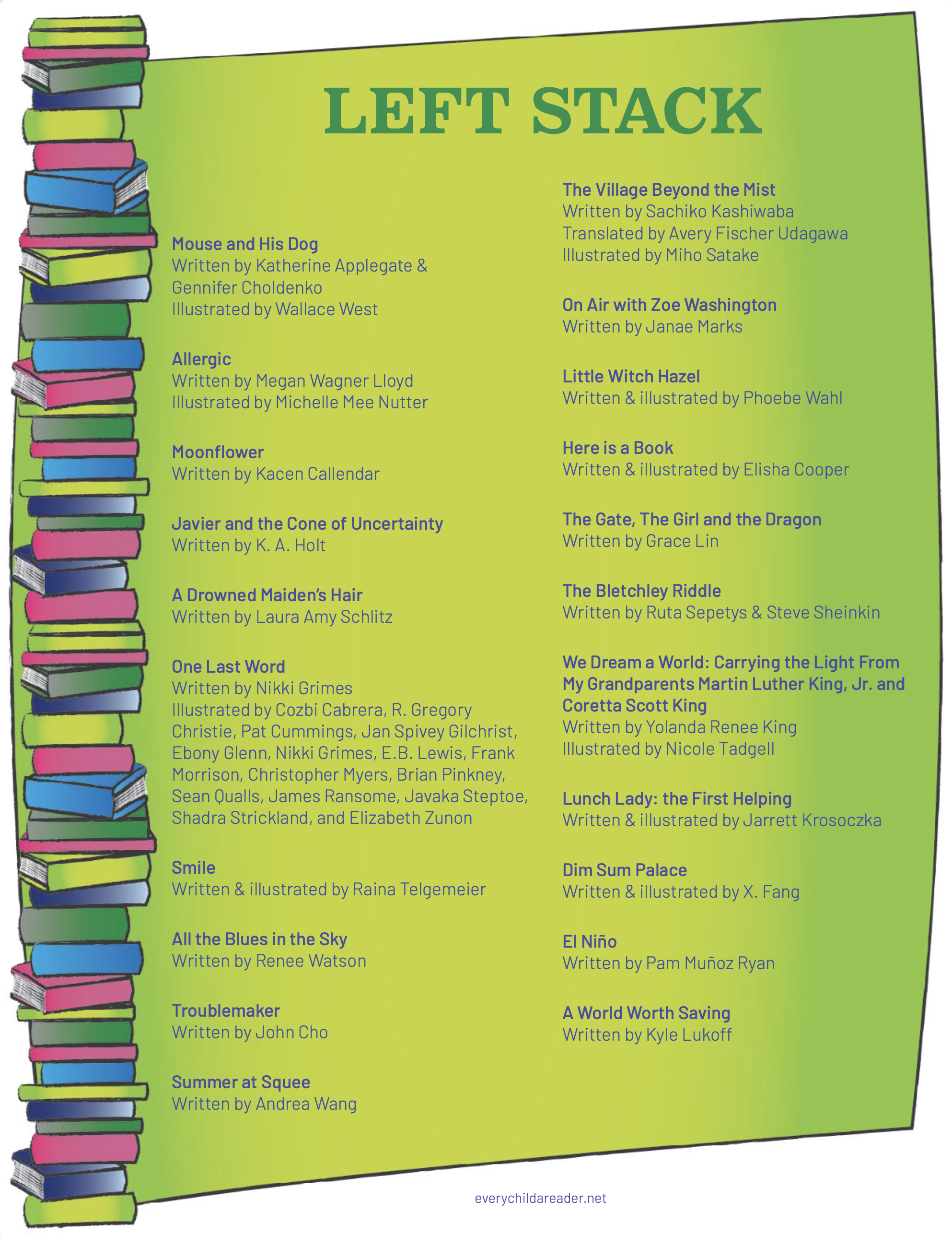 all the books Grace drew on the poster.